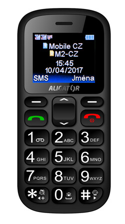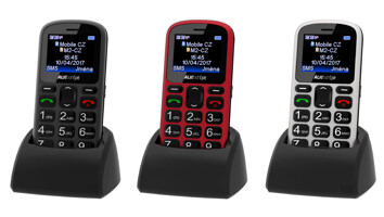 Telefon pro seniory s SOS tlačítkem. Obrázkový tel. seznam, SOS locator, podpora dual SIM. Nabíjecí stojánek.
