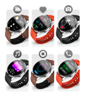 Díky snadno dostupným informačním obrazovkám na hodinkách přejdete jednoduše k hlavním funkcím hodinek, jako jsou zobrazení přehledů denních a zdravotních aktivit, počasí, dálkové ovládání fotoaparátu telefonu a hudebního přehrávače, nastavení dýchacího cvičení nebo zobrazení displeje pro vytáčení telefonních čísel a kontaktů.