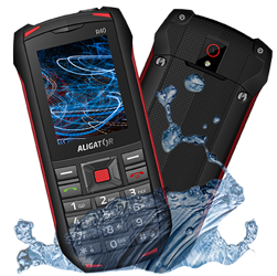 Odolný vodotěsný telefon s kovovými bočnicemi. Baterie 2500mAh s funkcí powerbanky. Velký displej 2,8"
