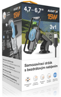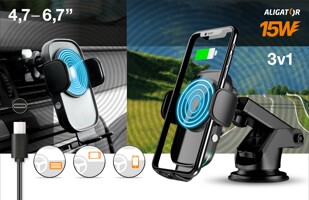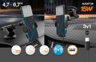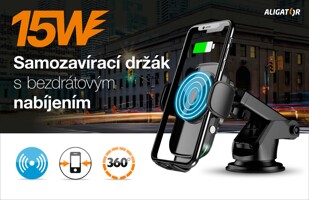 Samozavírací držák do auta s bezdrátovým nabíjením Aligator 3v1.
